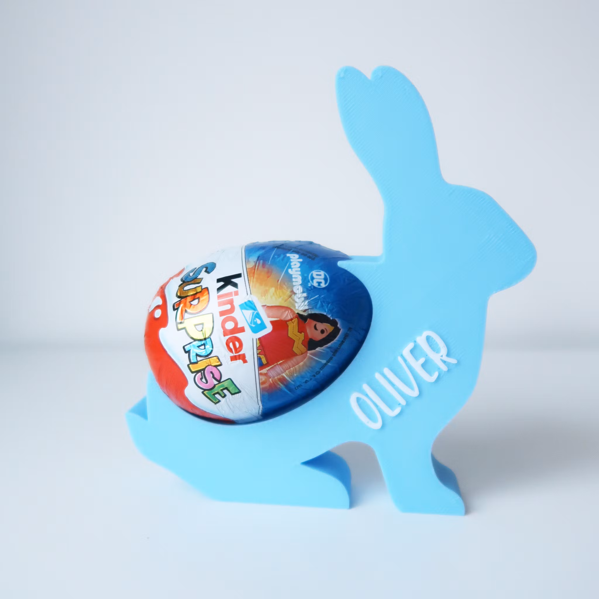 Rolig sak för barnen, med egen vald text och färg, ägget sitter stadigt på kaninen.